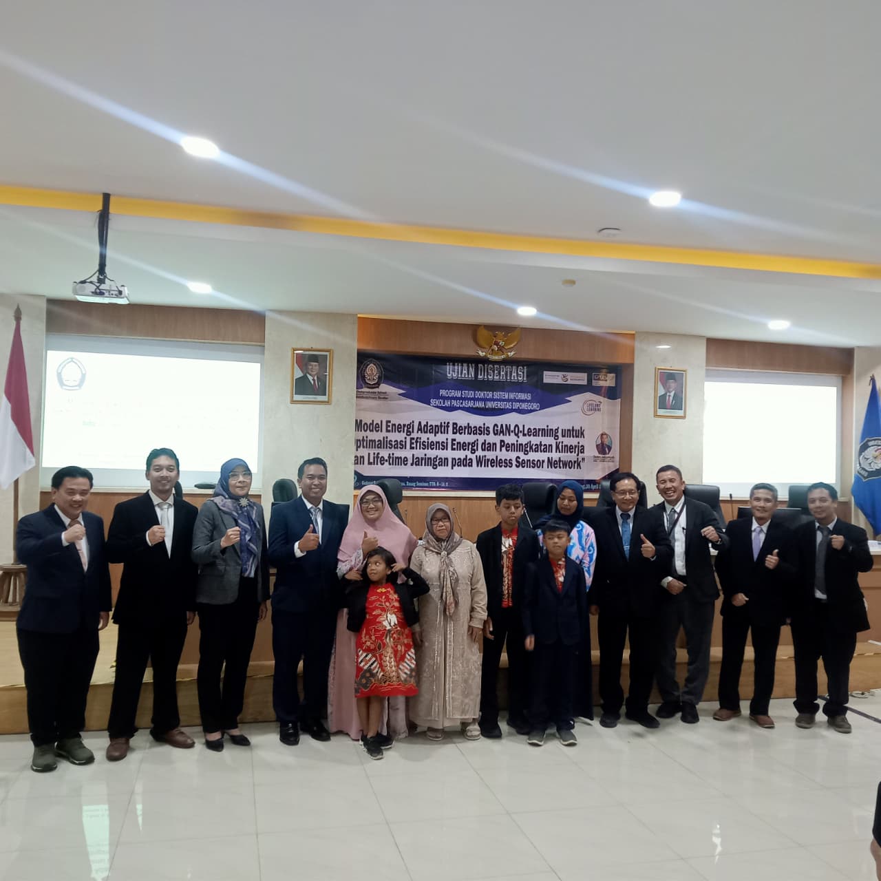 Deden Ardiansyah, a lecturer in the Information Systems Study Program at Pakuan University, successfully earned his doctorate after defending his dissertation entitled “A GAN-Q-Learning-Based Adaptive Energy Model for Optimizing Energy Efficiency, Performance Improvement, and Network Lifetime Extension in Wireless Sensor Networks,” before the examiners at the Undip Postgraduate Building on Monday (April 20, 2026).